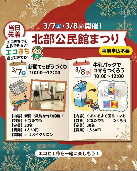 3月7日(土)8日(日)に北部公民館まつりが開催されます。